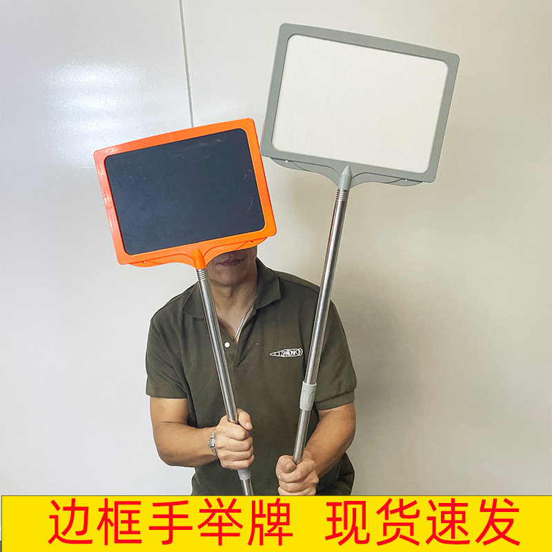 手举牌定制边框伸缩杆蓝橙灰手写可擦白板黑板广告kt版促销牌a3a4