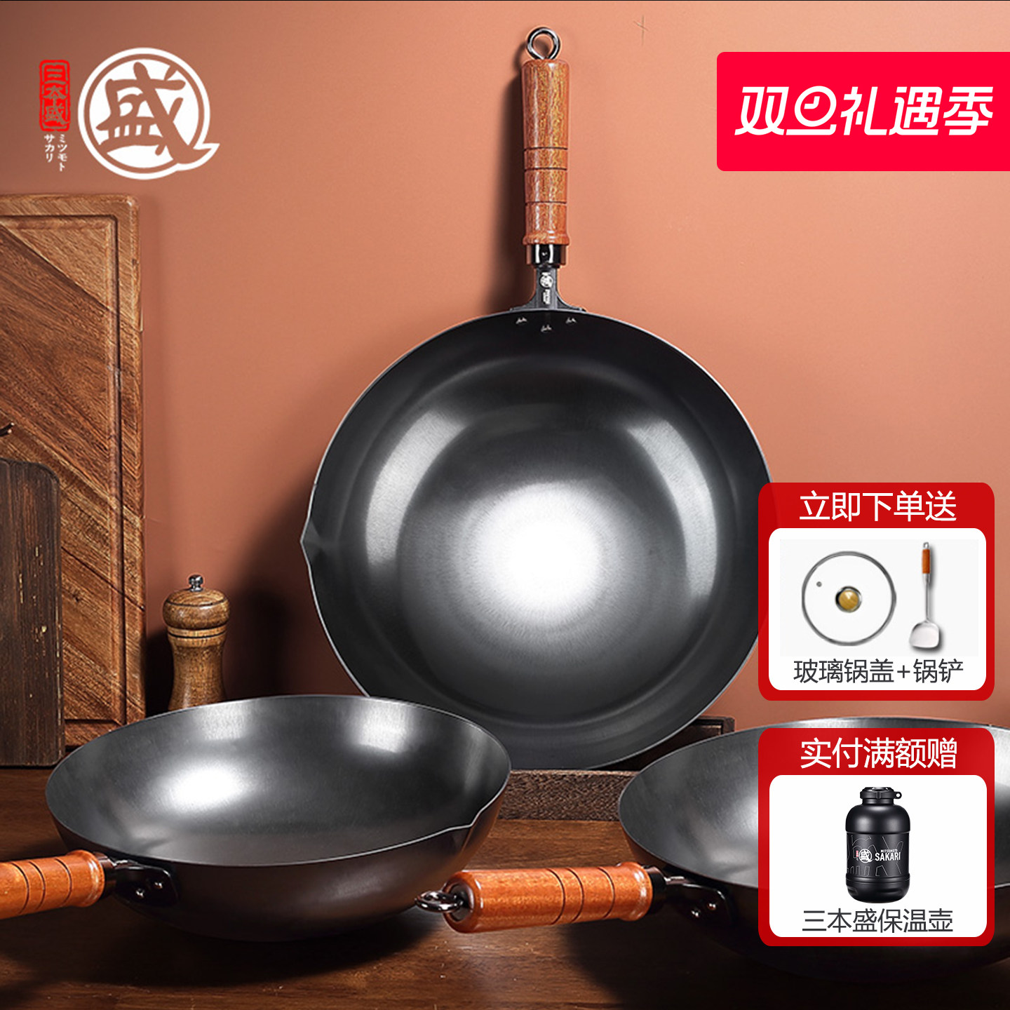 三本盛日本原装进口铁锅炒菜锅家用无涂层炒锅极铁不粘锅燃气灶用