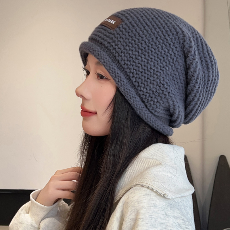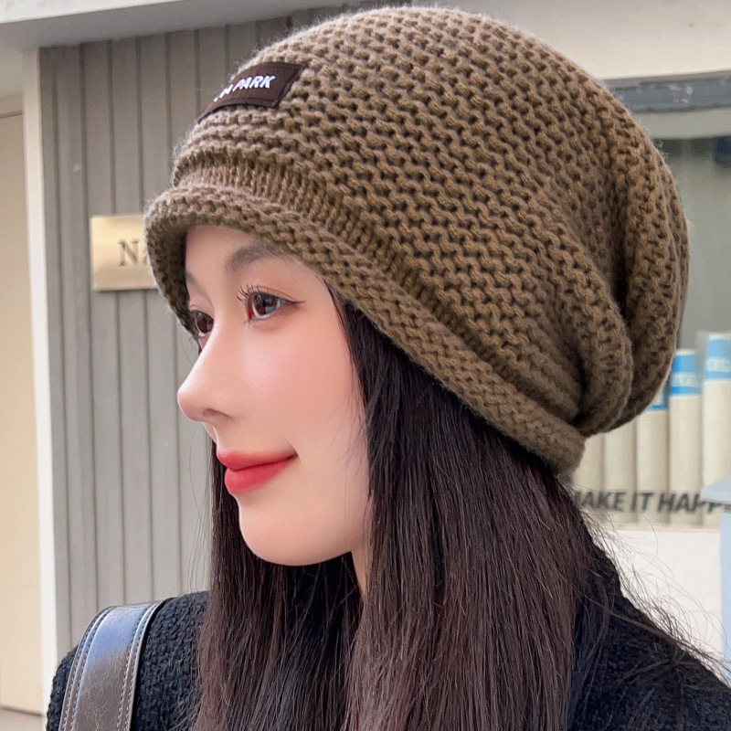帽子女秋冬天针织毛线帽大头围帽子保暖休闲包头帽慵懒堆堆帽
