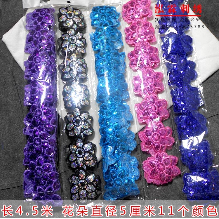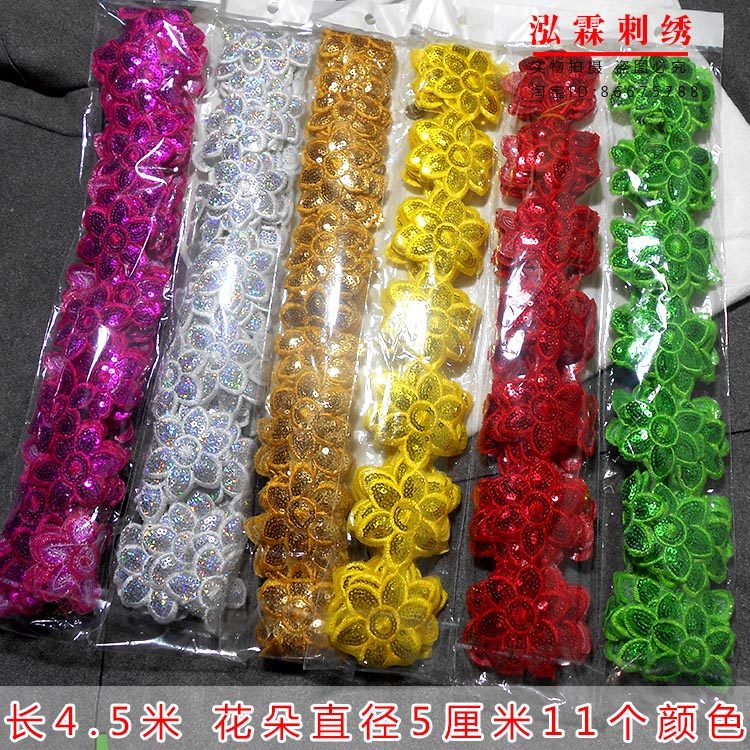 推荐理由:太阳花梅花多亮片花边舞蹈服装辅料刺绣花边小花朵装饰贴花背胶