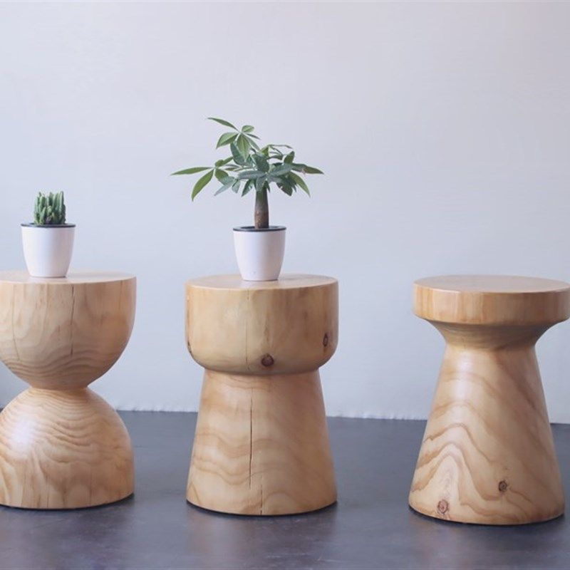 北欧原木凳子实木墩子坐凳家用边几树桩酒店摆件茶几创意木桩圆凳