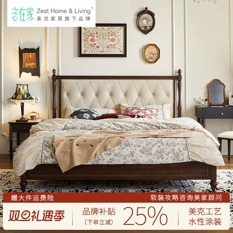 美克/恣在家【弦月】中古风软包真皮床实木高端大气主卧双人大床