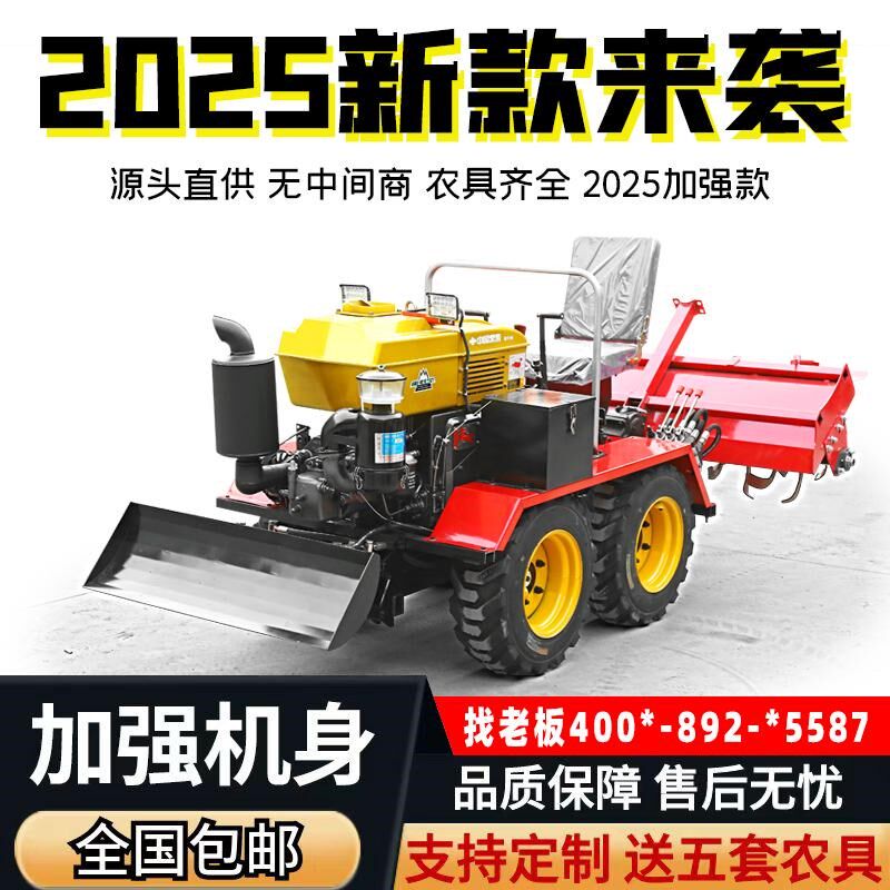 2025水旱两用乘坐式旋耕机农用微耕机四P驱耕地机履带拖拉机