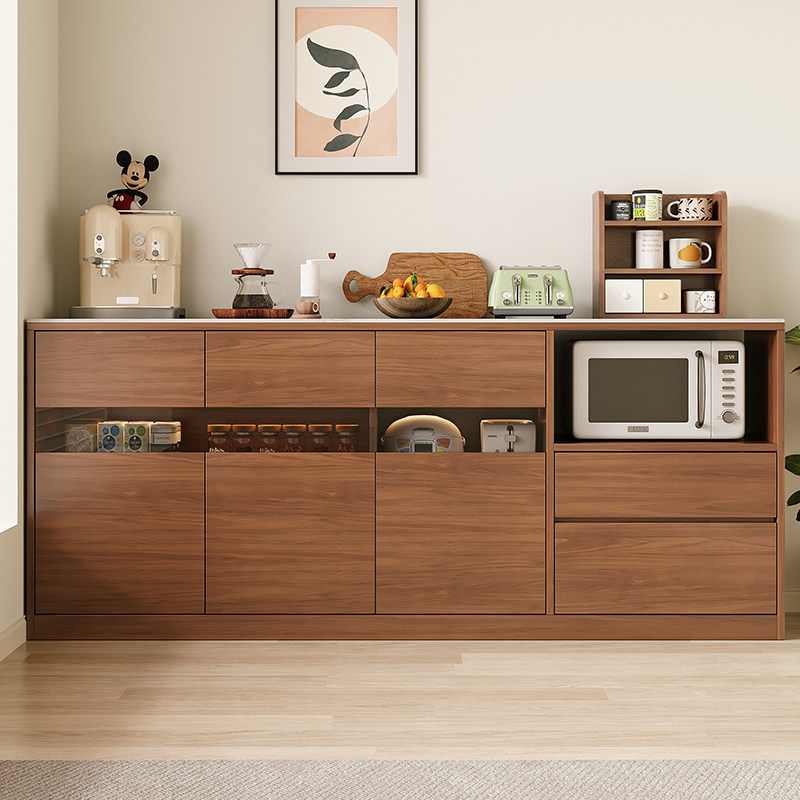岩板实木餐边柜家用厨房落地茶水柜一体靠墙储物柜咖啡机置物柜