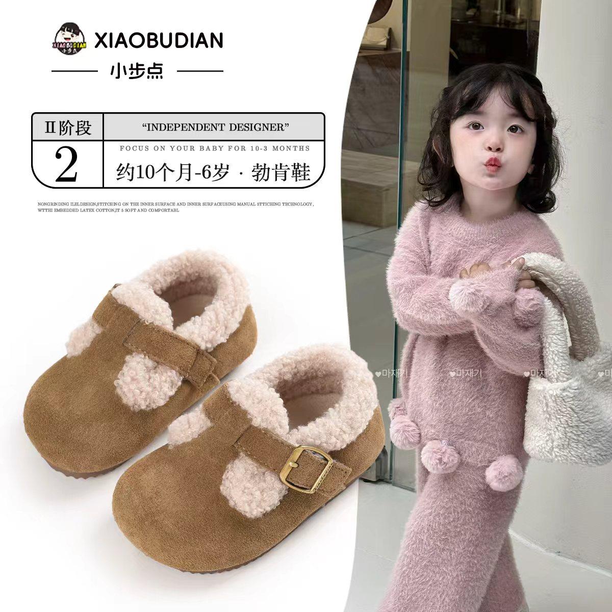女宝宝勃肯鞋冬季加绒儿童棉鞋软底婴儿学步鞋女童毛毛鞋男宝鞋子