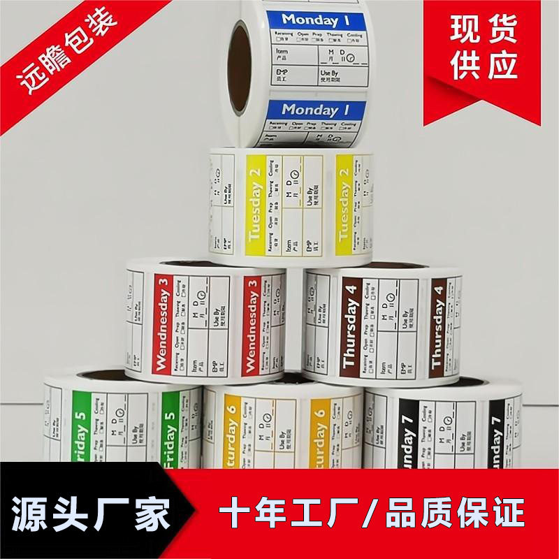 星期标签酒店餐饮可移胶耐高温周一到周日7色餐厅食品有效期贴纸