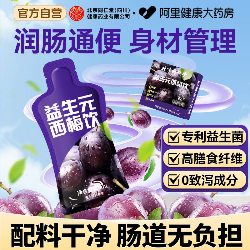 北京同仁堂西梅汁大餐救星益生元菌高膳食纤维果饮脂减肠清排宿便