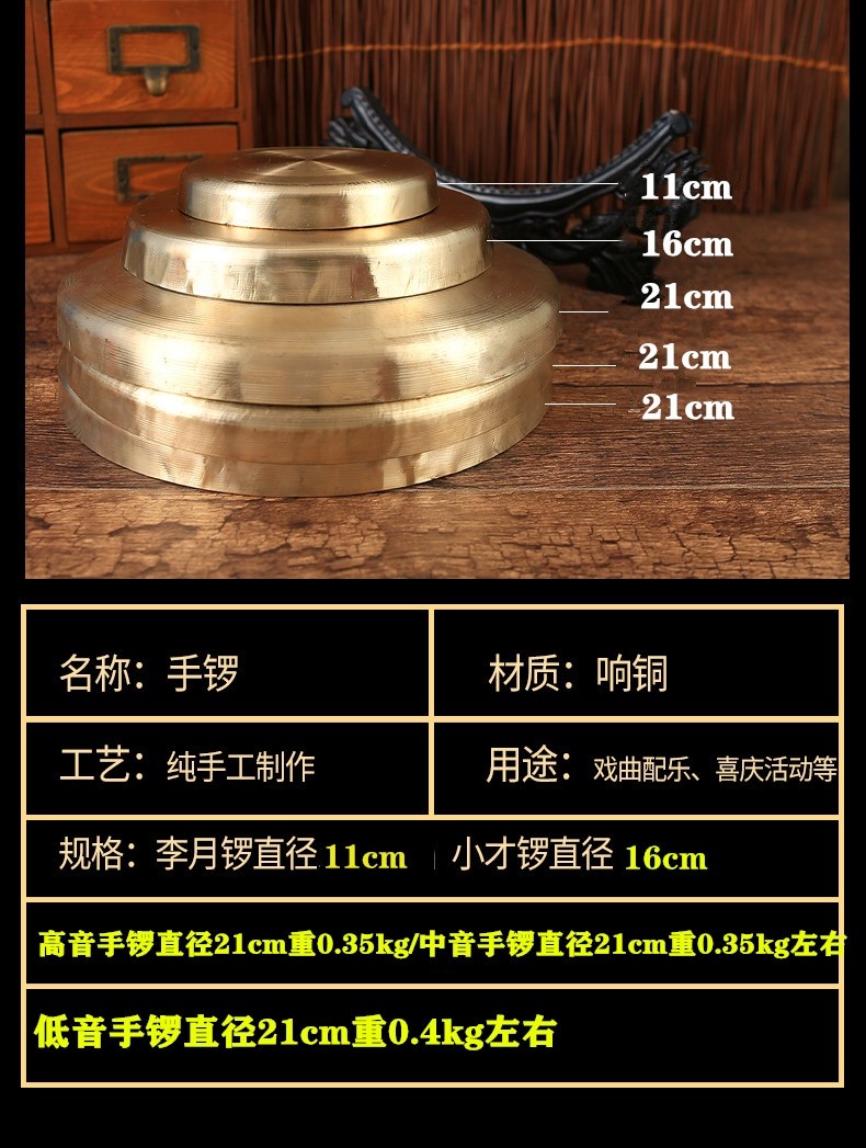 传统铜锣21厘米高音锣中低音手锣喜庆演奏响铜锣小才锣李月锣耐用