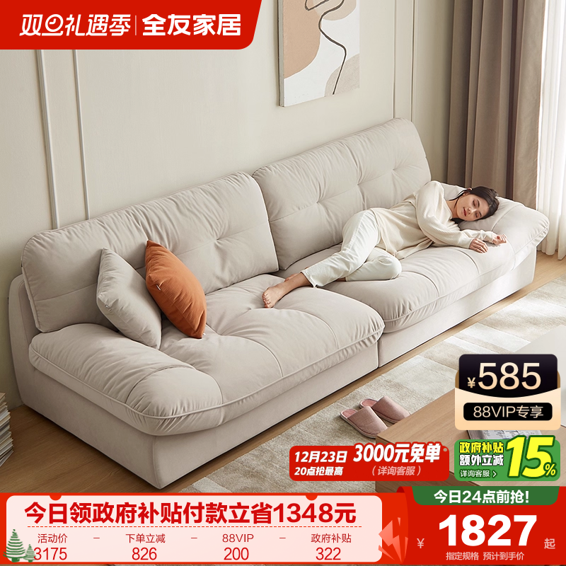 政府补贴全友家居2025新款云朵沙发客厅直排小户型猫抓绒布艺沙发