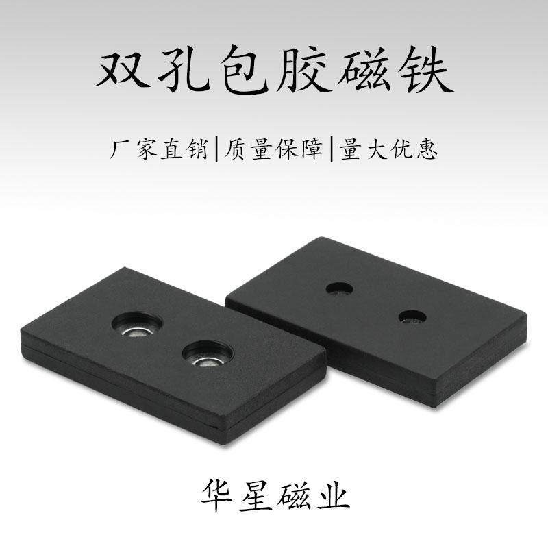 方形包胶磁铁吸盘 工业用F52x32x6.8带孔磁铁配件