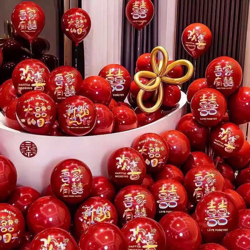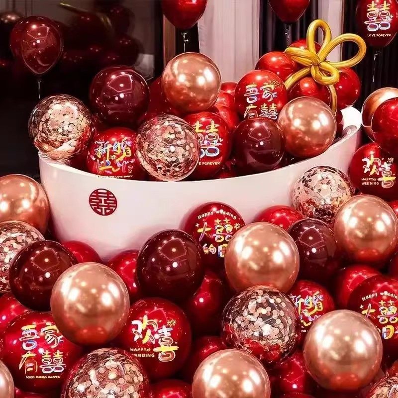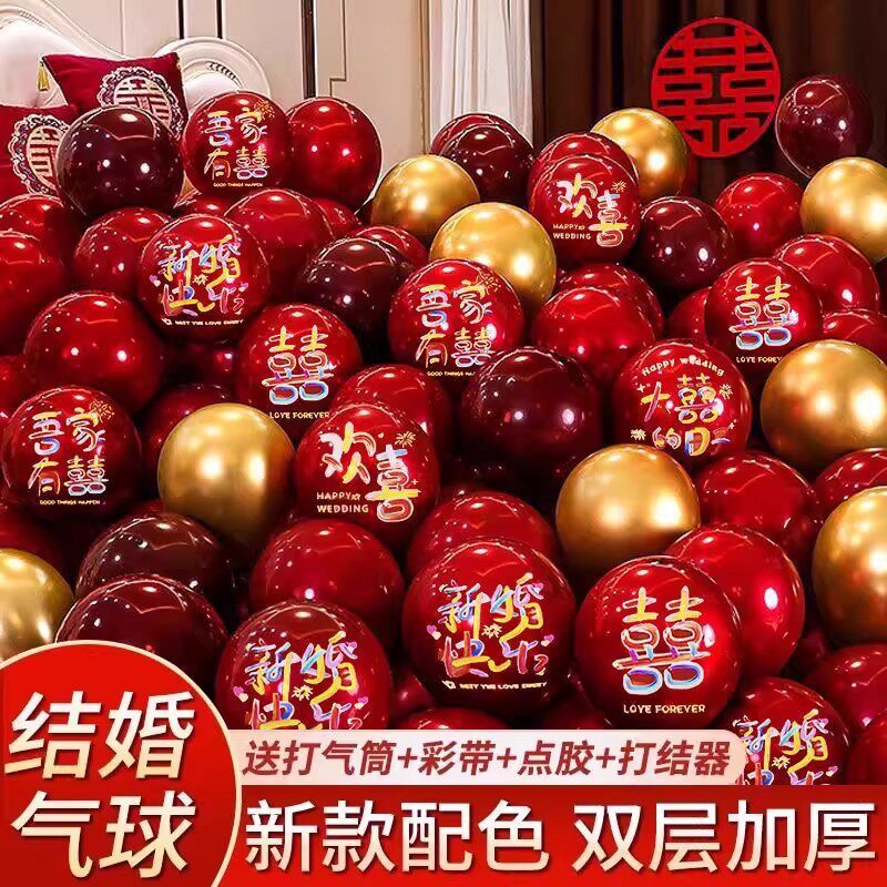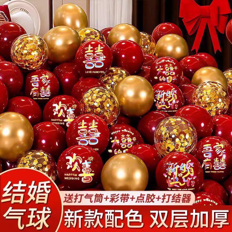 2025新款结婚红色婚房气球套装双层婚礼订婚布置装饰婚庆场景用品