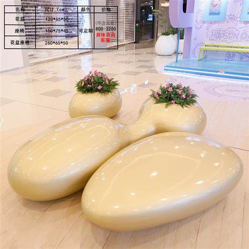 户外网红玻璃钢鹅卵石座椅商业广场休息区坐凳美陈软包沙发休闲椅