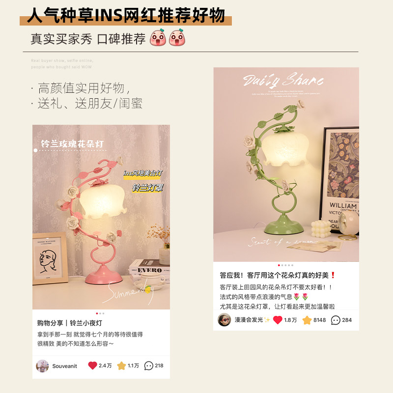 推荐理由:高颜值花朵台灯卧室床头柜灯高级感网红装饰结婚长明灯浪漫主卧灯