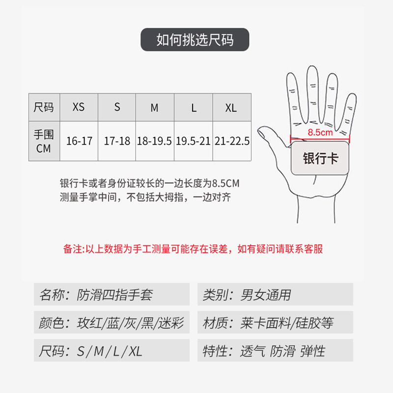 瑜伽手套女防滑四指健身护掌运动男单杠薄款空中专业四指健身手套