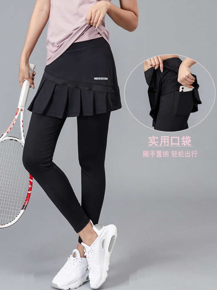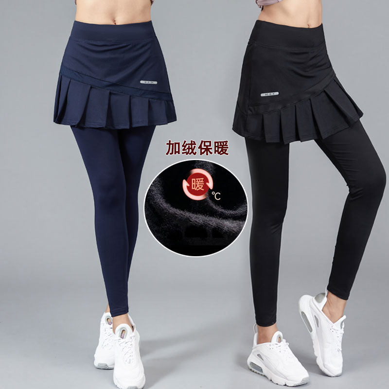 秋冬薄绒女运动羽毛球裤裙速干假两件网球跑步短裙瑜伽裤九分长裤