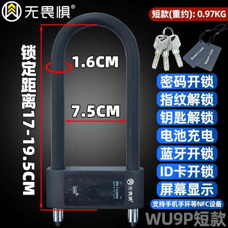 推荐理由:畏惧指纹u型锁码锁办公室玻门锁商璃铺店铺智密能插锁防水U无形锁