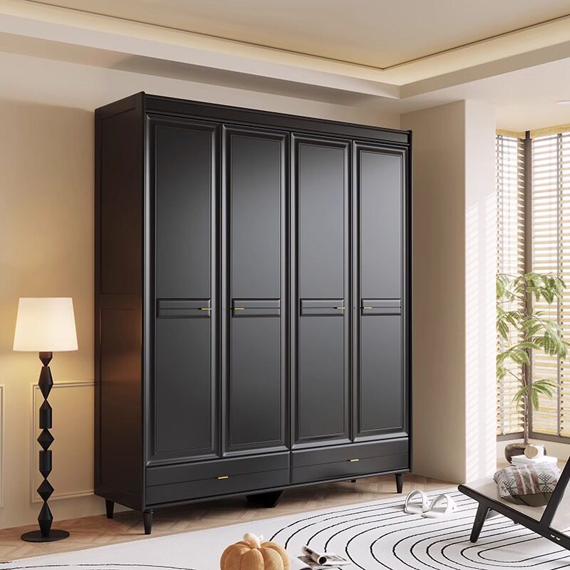 黑色全实木衣柜对开门两门小户型简易组装法式衣橱收纳柜家用卧室