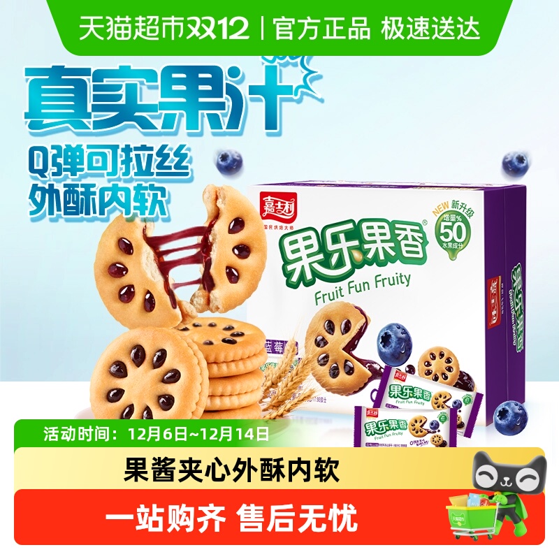 嘉士利果乐果香蓝莓味夹心饼干早餐下午茶零食礼盒整箱