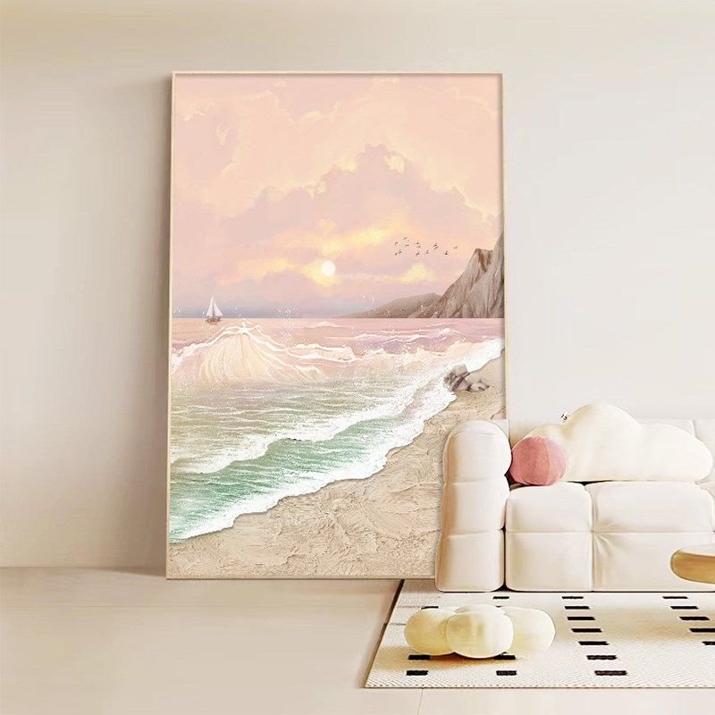 奶油风客厅装饰画现代简约沙发背景墙挂画海景落地画肌理玄关挂画