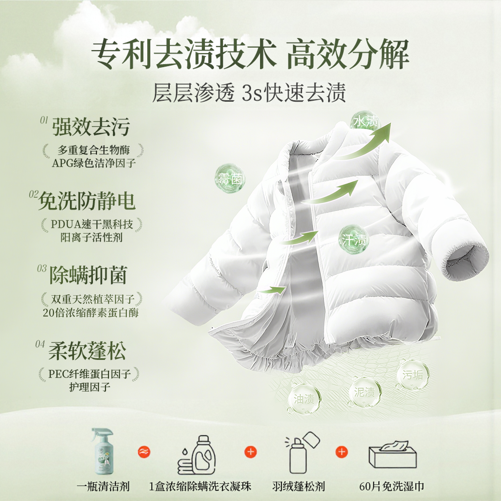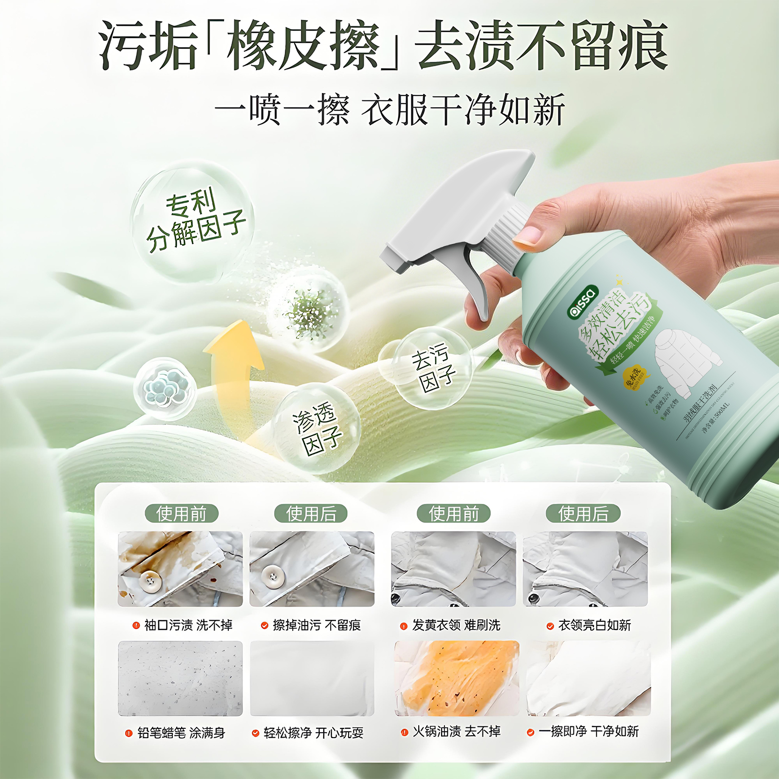 羽绒服清洗剂免水干洗蓬松强力去黄污渍衣领净家用专用洗涤清洁剂
