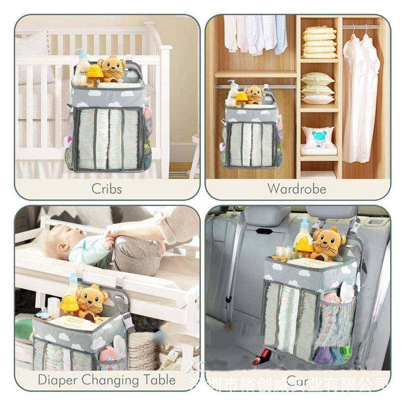 婴儿现货涤沦花收纳袋悬挂式床挂袋印挂尿布衣袋服置头物整理袋儿