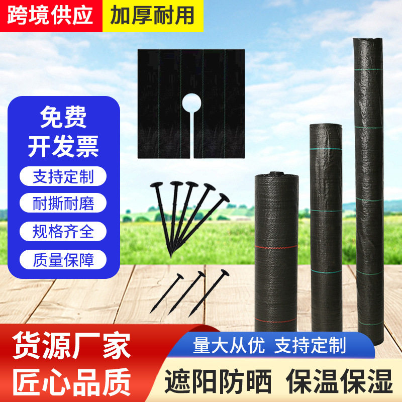 现货跨境供应叠片黑色pp防草布亚马逊除草布抗老化整卷果园防草地