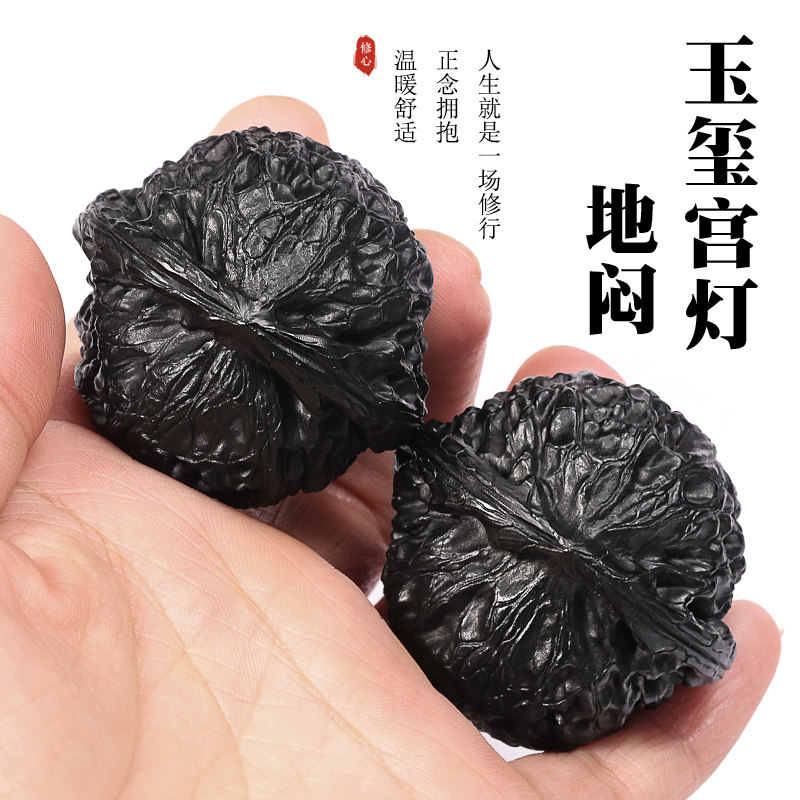 手工臻配玉玺宫灯麻核桃地闷黑工艺文玩小众木作精品把件狮子头捻