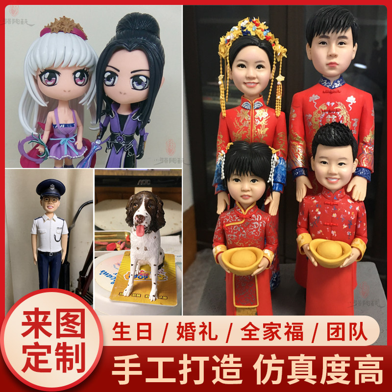捏泥人软陶人偶定制软陶公仔玩偶手办真人照片创意生日结婚礼物