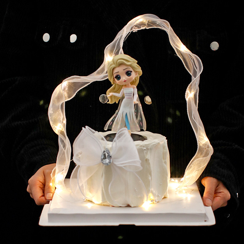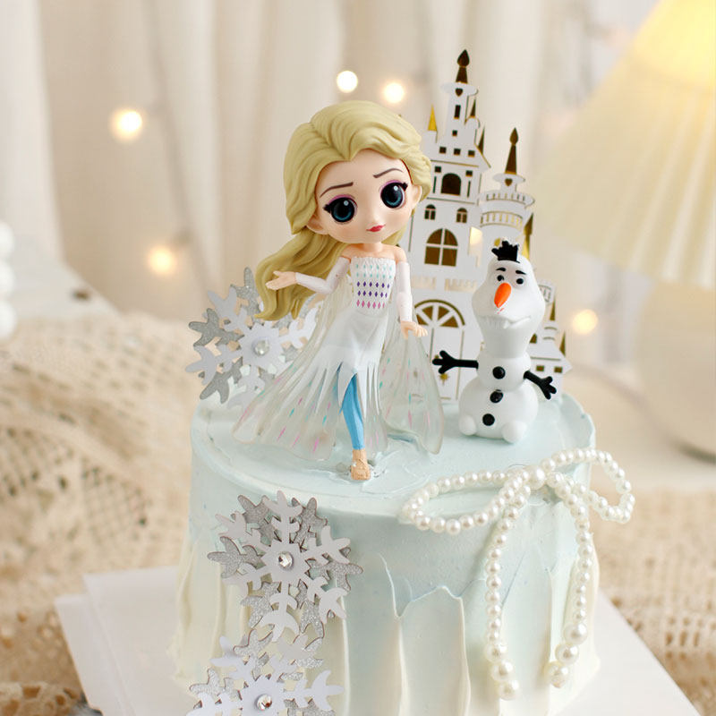 第四代艾莎公主蛋糕装饰卡通冰雪奇缘爱莎玩偶雪宝摆件城堡插件