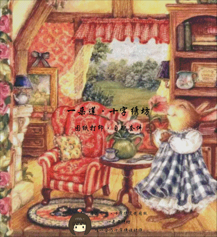 一朵莲绣坊十字绣自配套件图纸打印蘑菇嘟嘟设计授权 彼得兔的家
