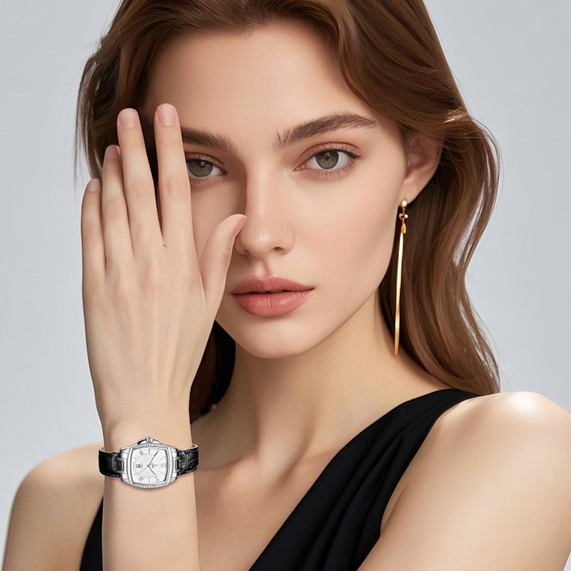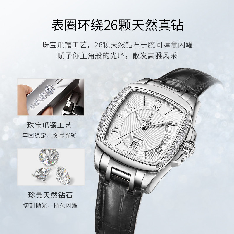 瑞士依波路女士机械表传奇系列皮带镶钻机械腕表时尚方表女款手表