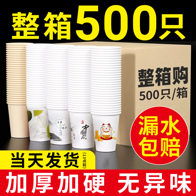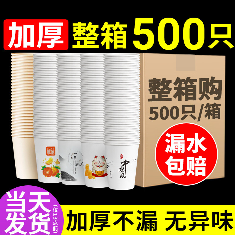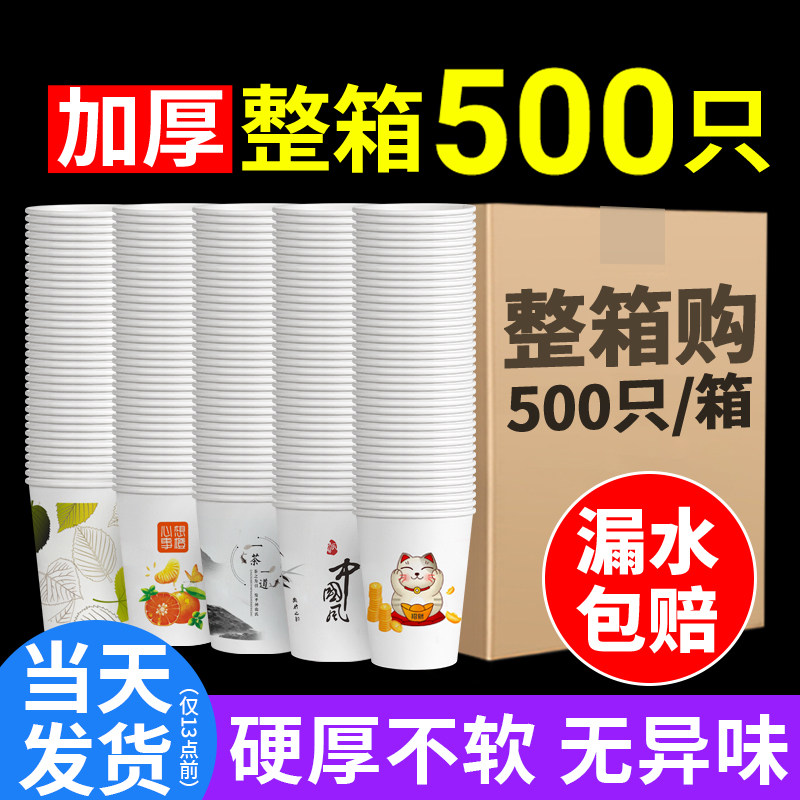 推荐理由:纸杯一次性茶水杯子家用加厚商用整箱批500只热饮错版定制印logo