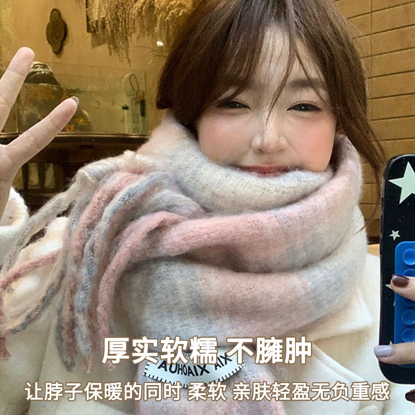 推荐理由:2025新款粉色仿羊绒围巾女秋冬季韩系氛围感加厚保暖学生百搭围脖