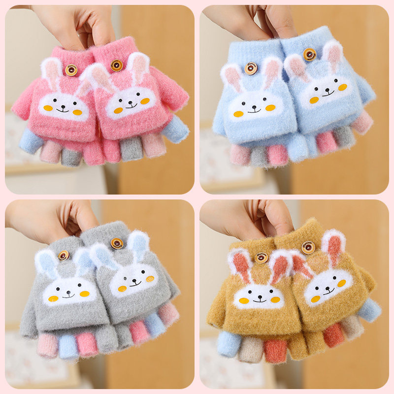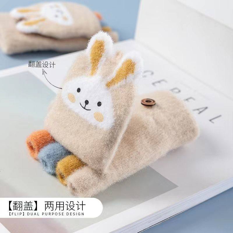 儿童卡通手套冬季五指翻盖男女孩小兔可爱加厚保暖亲肤小学生手套