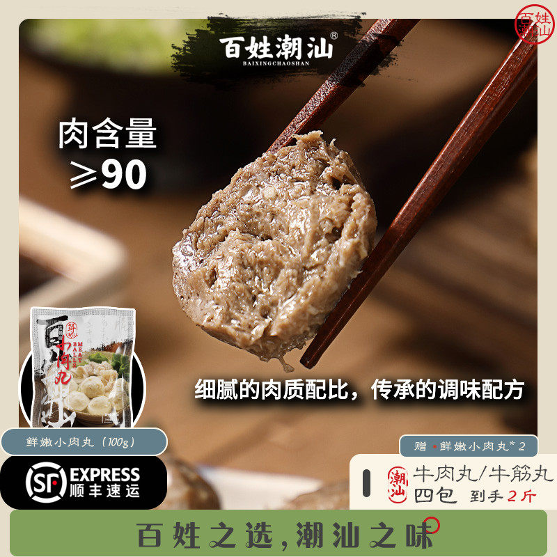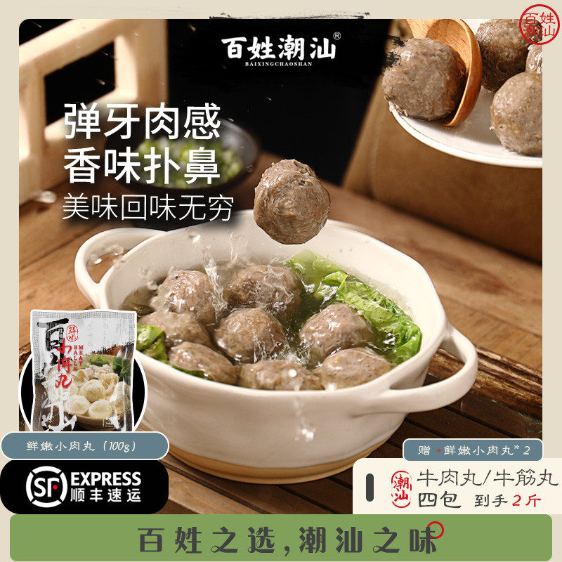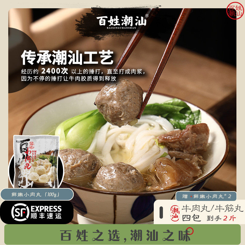 百姓潮汕牛肉丸牛丸火锅丸子烧烤火锅食材牛筋丸肉含量90%2斤4包