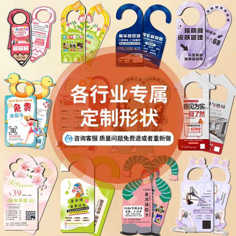 门挂广告定制门把手挂卡门挂卡挂钩异形宣传卡片挂门车门门锁美容家政贷款汽车停车牌号传单设计印刷制作