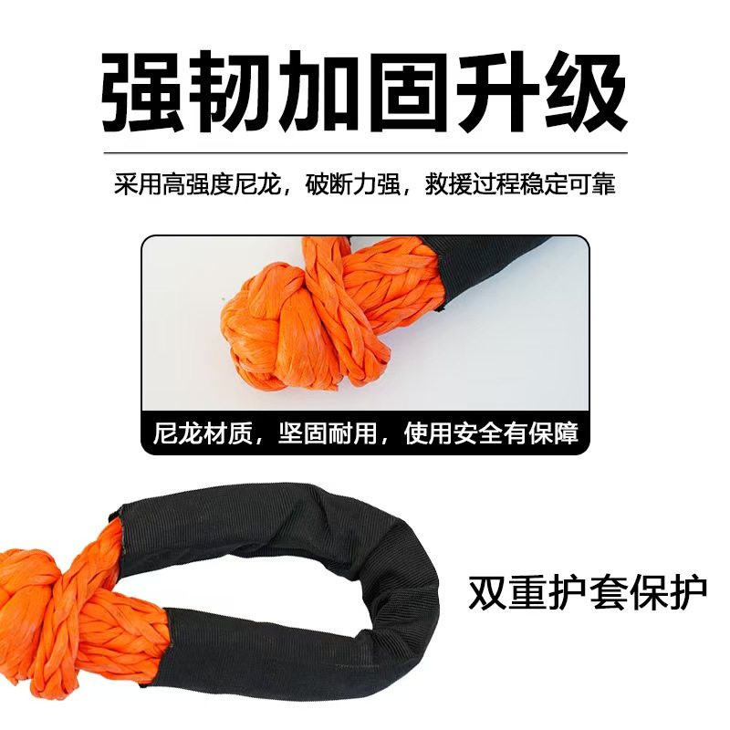 固达仕汽车拖车绳软卸扣高分子拉车绳拖车救援工具牵引绳疙瘩绳扣