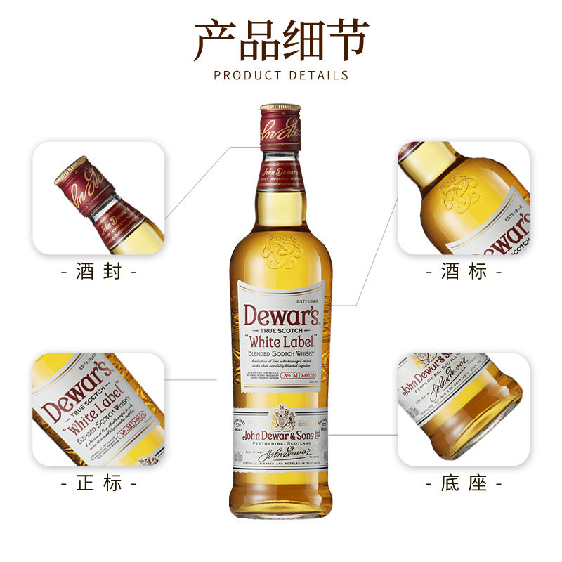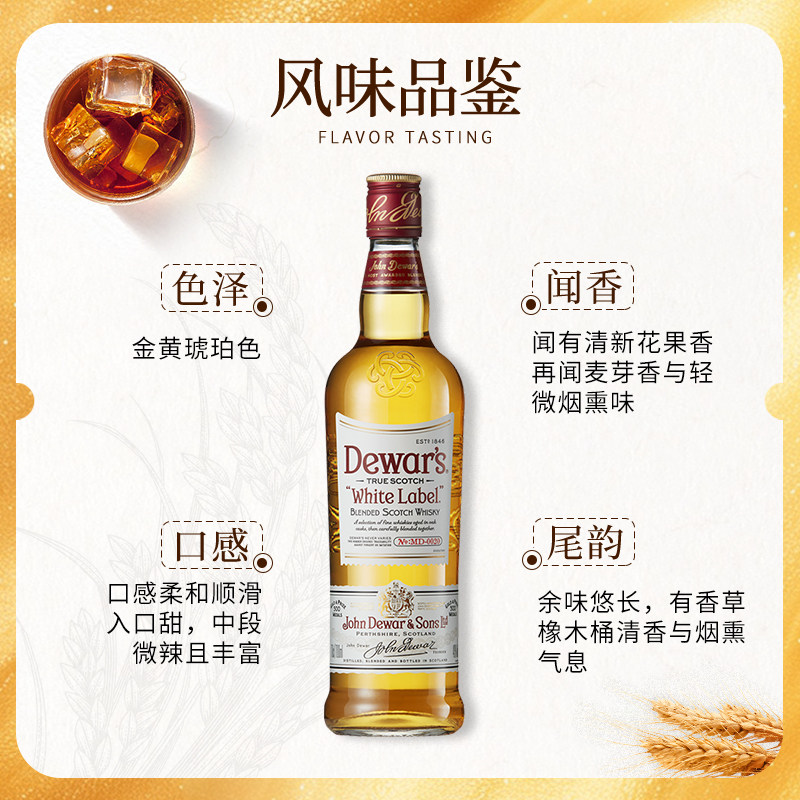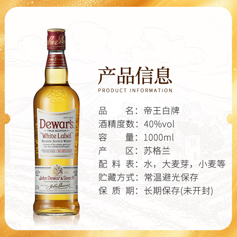 推荐理由:Dewar’s 帝王白牌1000ML 苏格兰调和威士忌海外进口洋酒调鸡尾酒