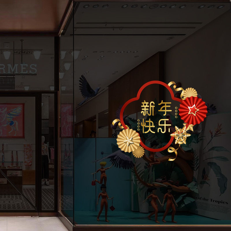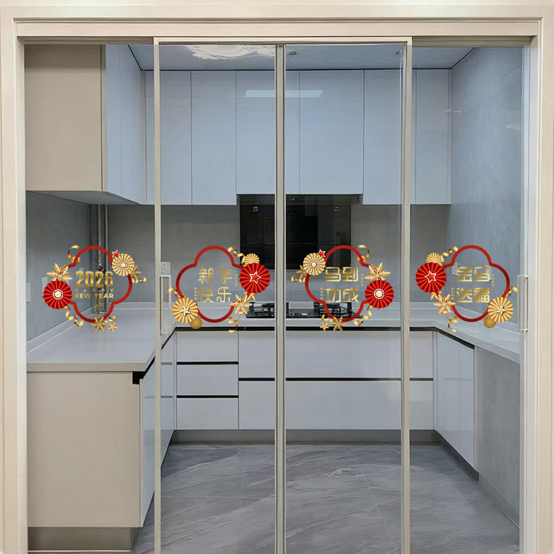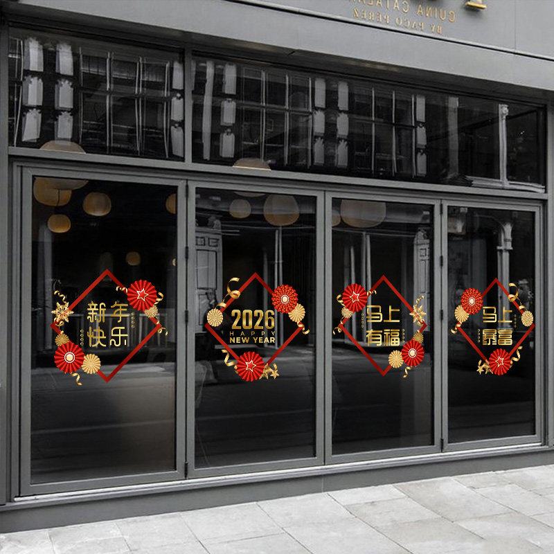 推荐理由:马年新年橱窗玻璃贴纸2026春节装饰布置定制玻璃门防撞贴静电窗花