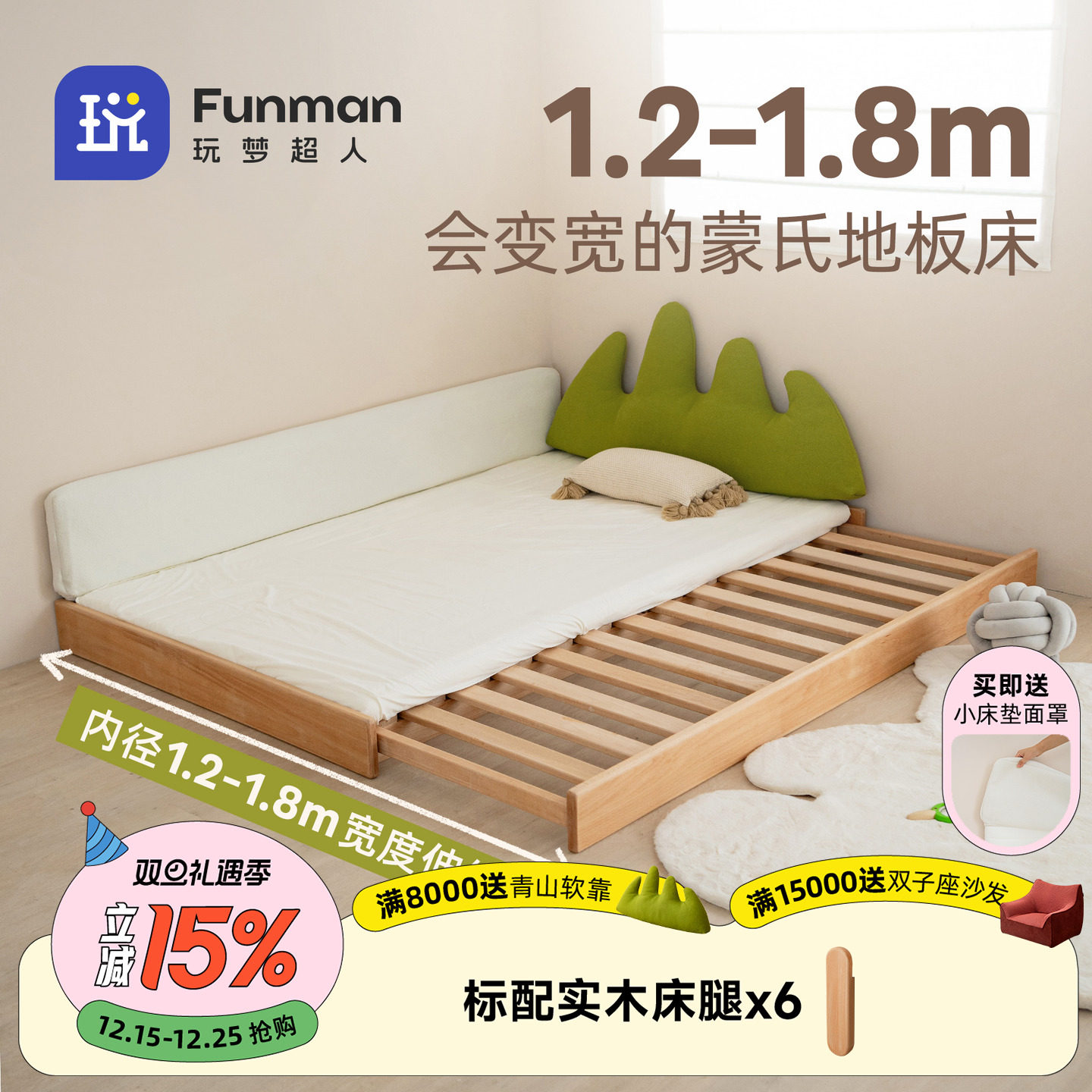 玩梦超人 地台床蒙氏地板床实木侧面可伸缩加宽婴儿宝宝床儿童床