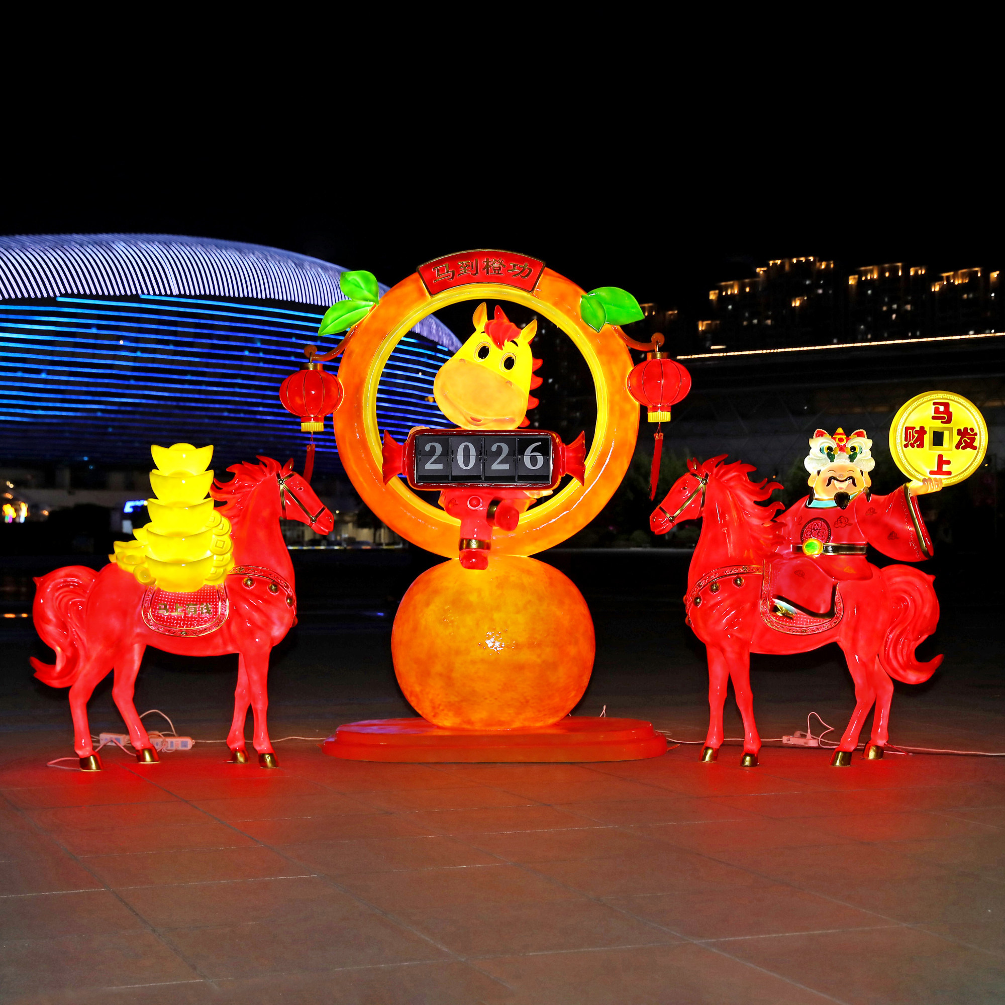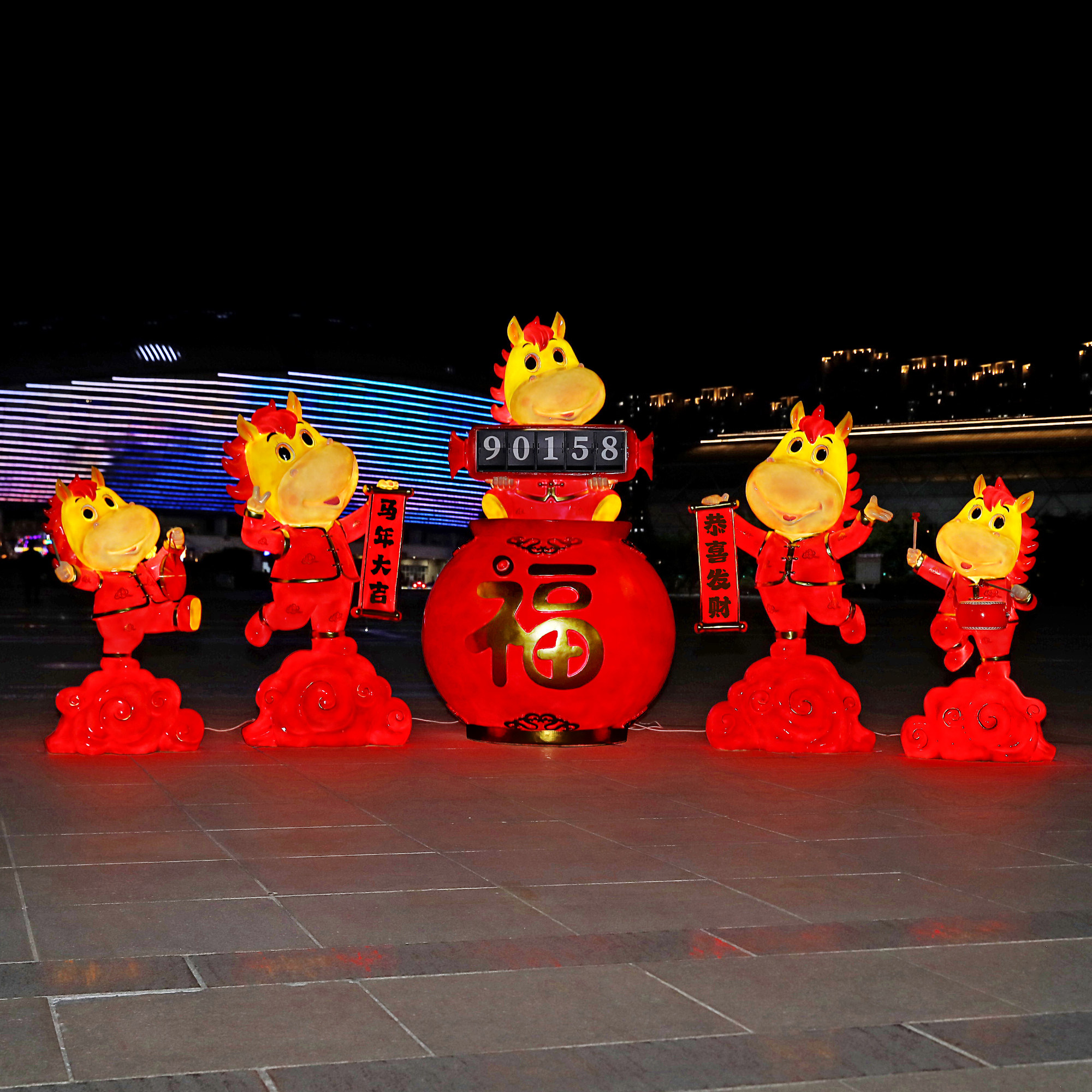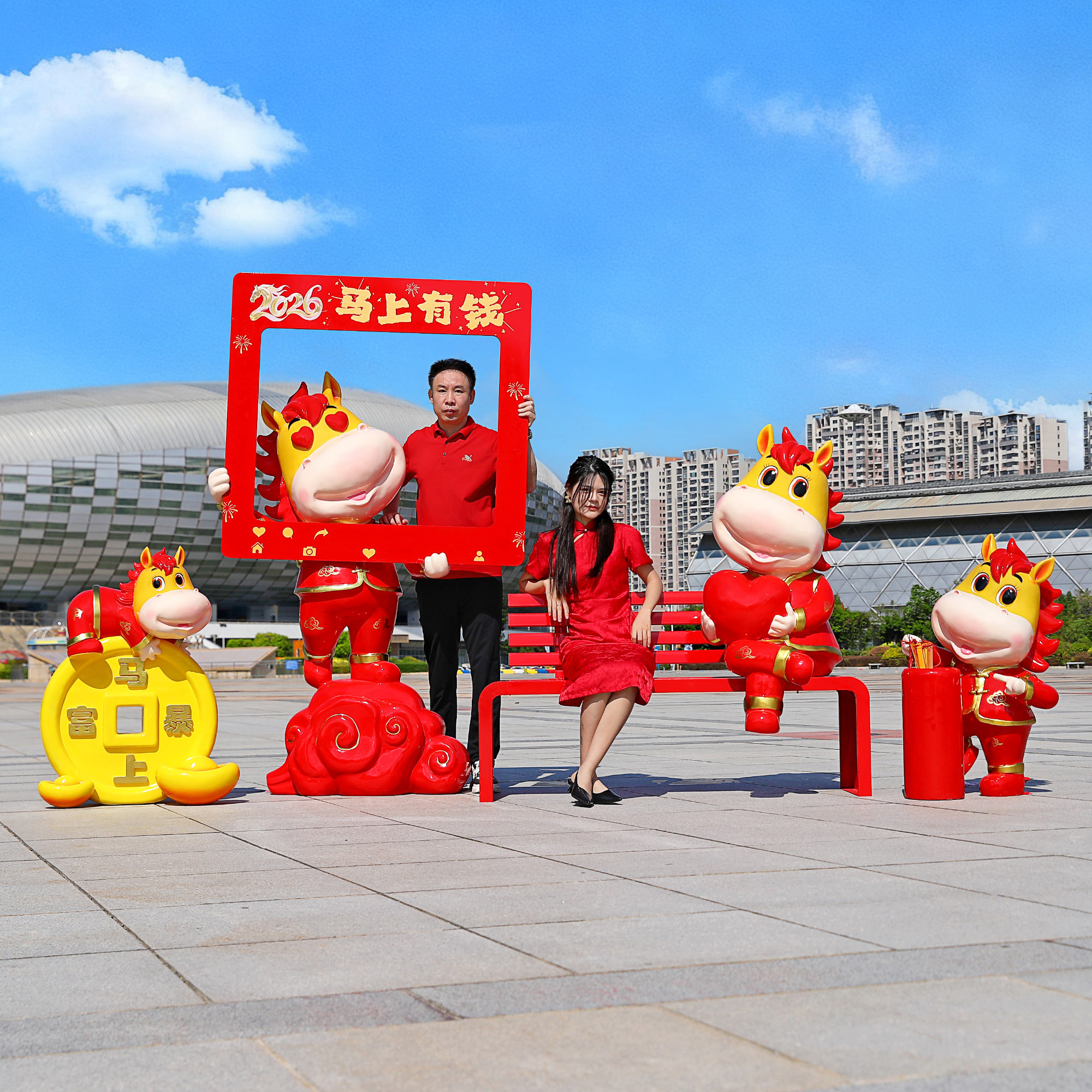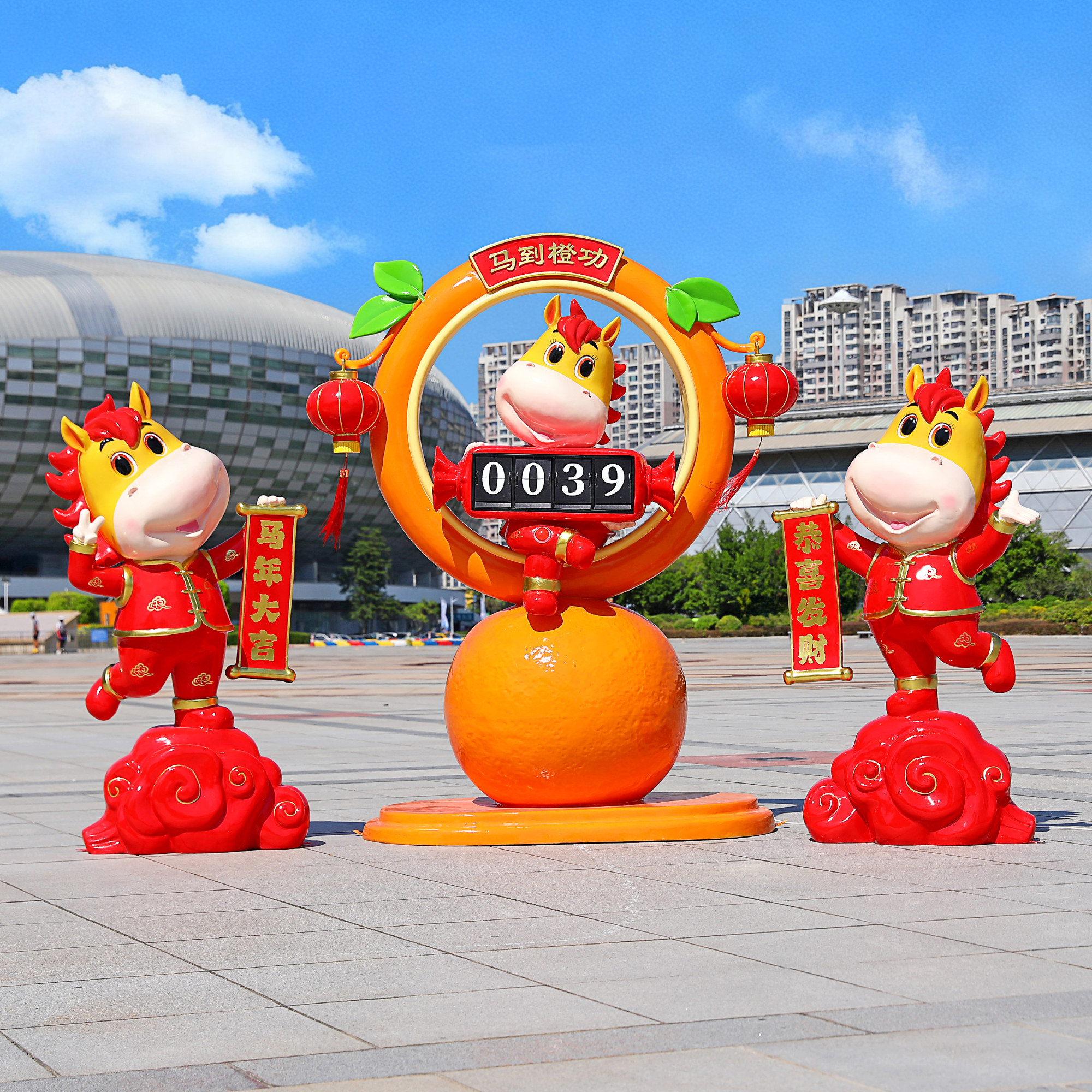 户外新年马雕塑玻璃钢卡通马年吉祥物春节元旦网红马 大摆件