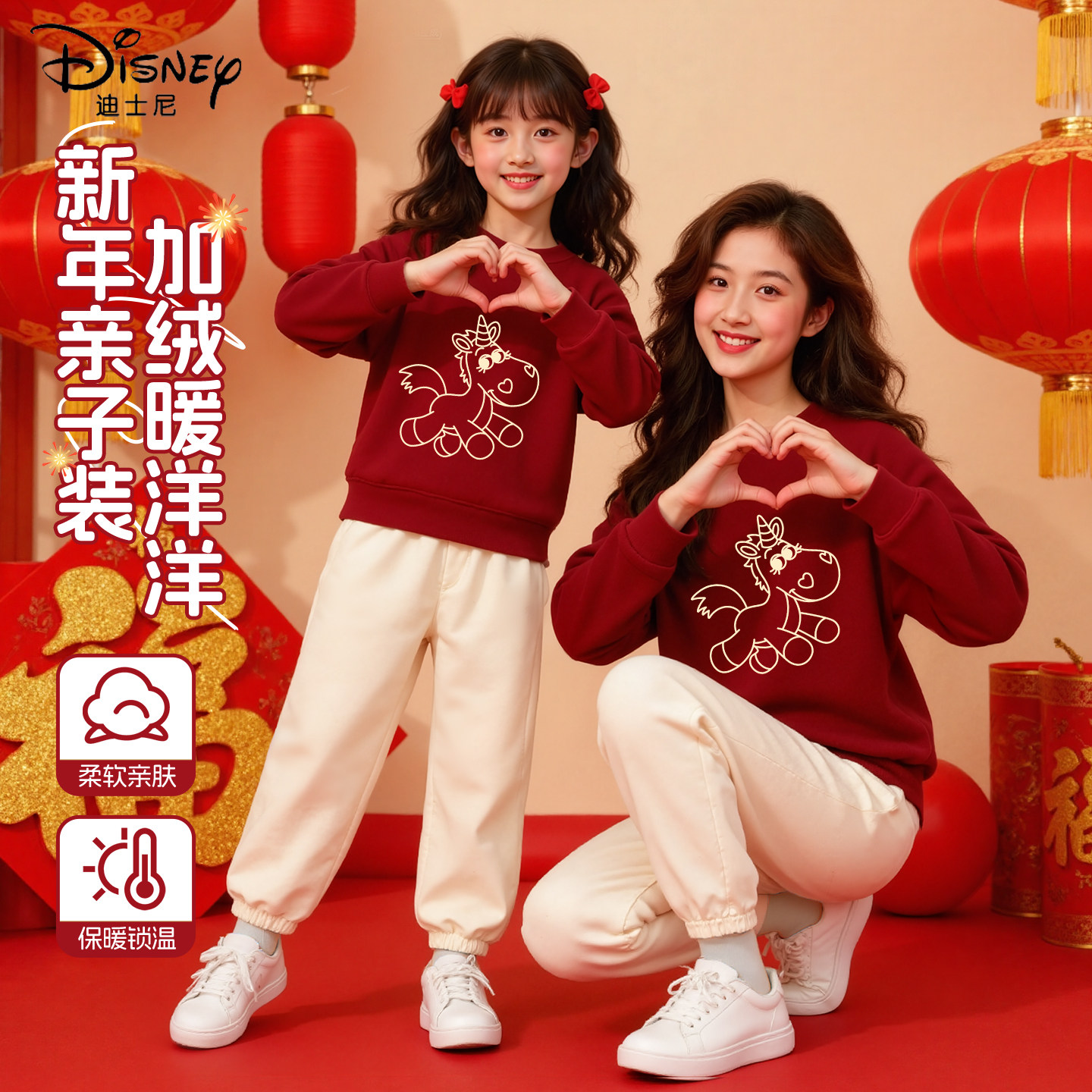 推荐理由:迪士尼亲子装母女款过年洋气好看2025新款马年冬装加绒卫衣母女装