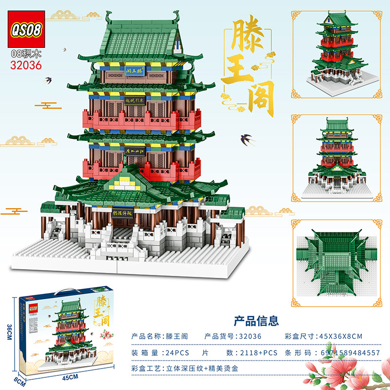 微钻颗粒中国风建筑旋转木马拼装积木教育机构招生礼品儿童玩具
