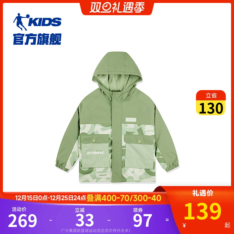 中国乔丹童装男童外套秋冬款儿童春装2025新款大童运动风衣连帽潮