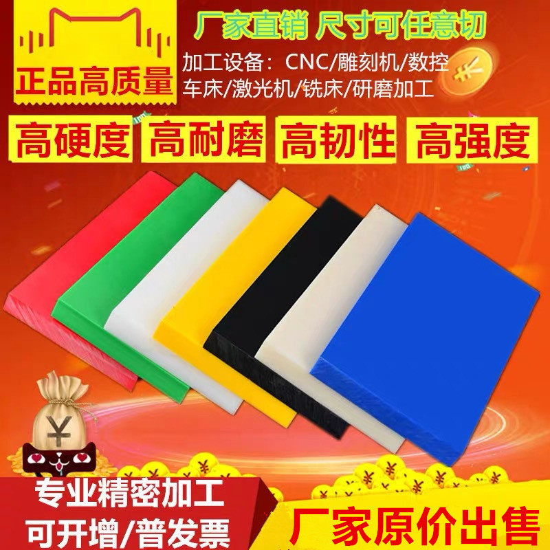 绿色UPE板黄HDPE方条蓝MC尼龙棒peek红POM棒加工定制米黄ABS垫圈