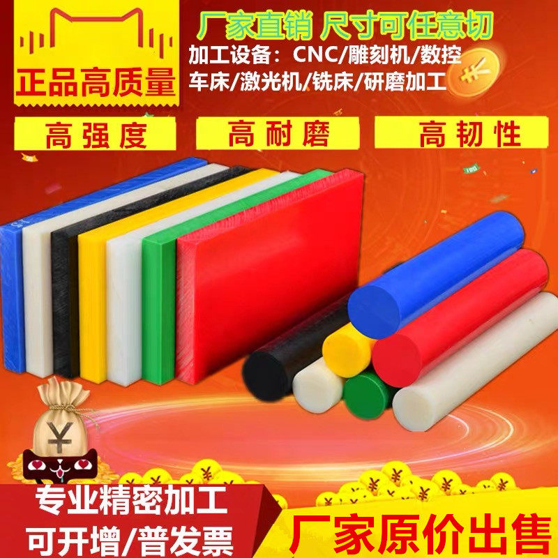推荐理由:绿色UPE板黄HDPE方条蓝MC尼龙棒peek红POM棒加工定制米黄ABS垫圈