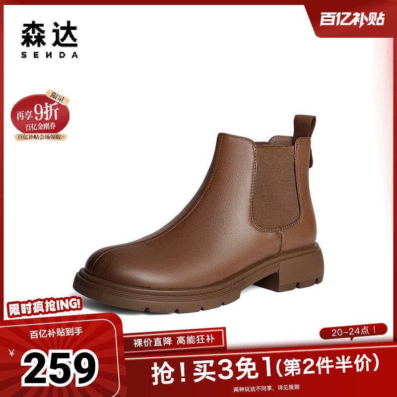 森达切尔西靴女鞋冬新商场同款超软羊皮经典休闲短靴XCU01DD4