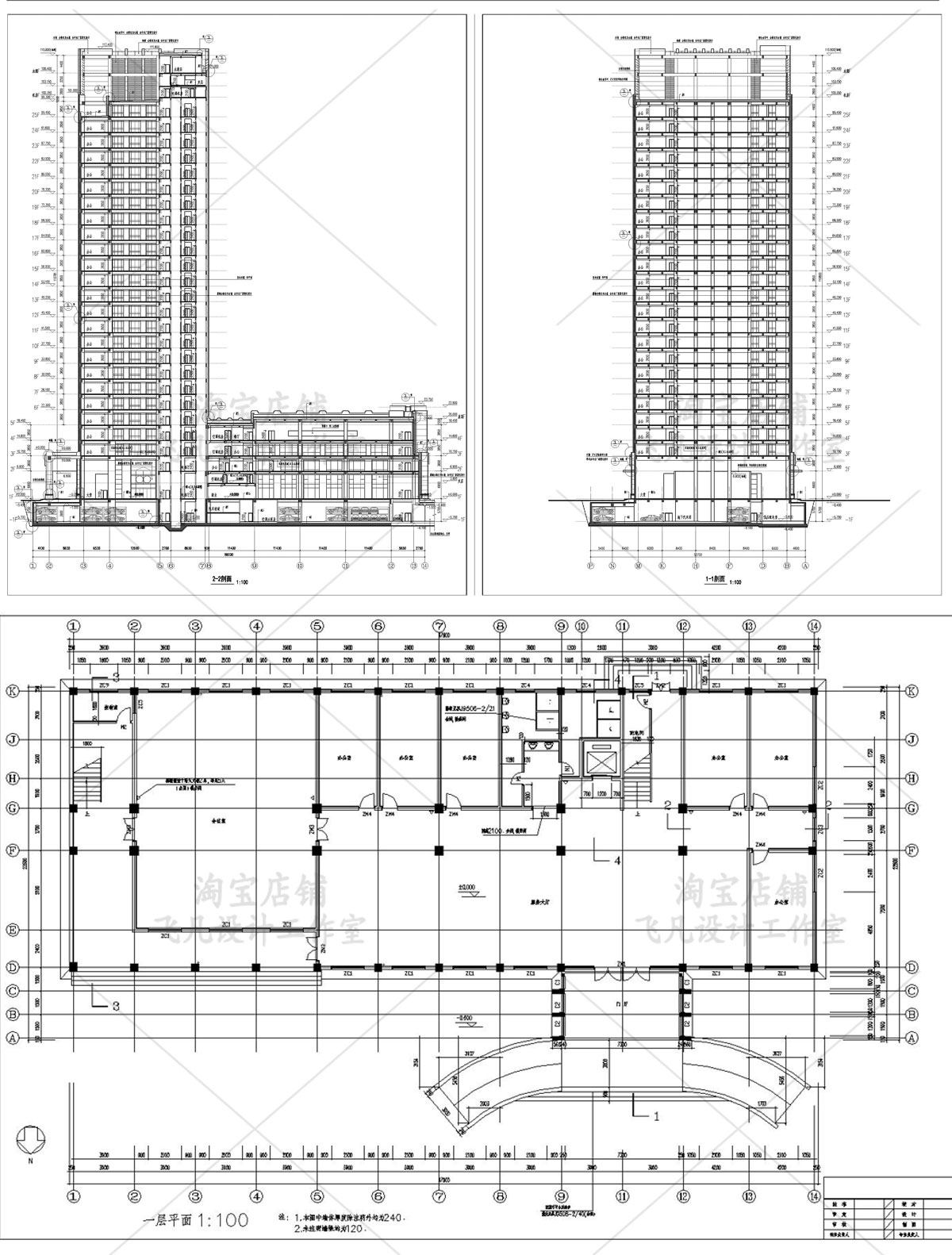 推荐理由:办公楼建筑设计方案CAD施工图行政楼综合楼写字楼立面图平面图纸