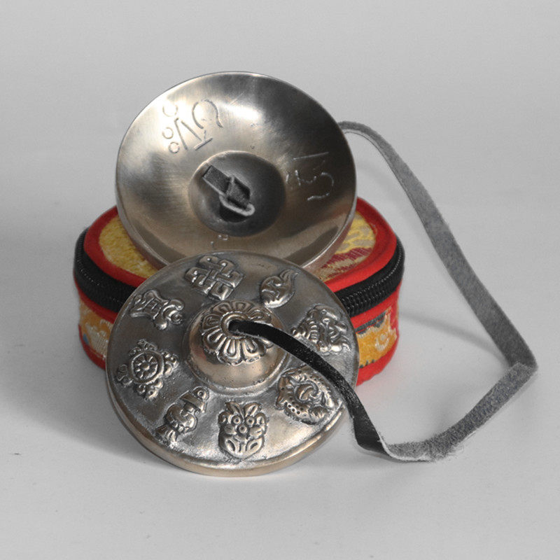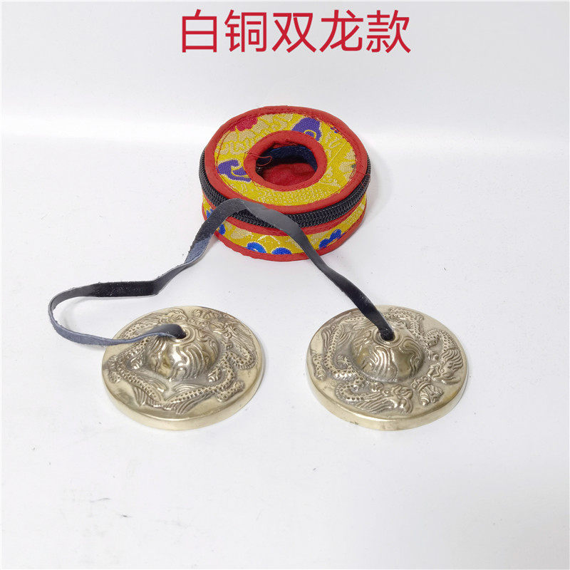 尼泊尔手工碰铃瑜伽音疗藏铃西藏叮夏白铜双磬法会用品铃送碰钟套