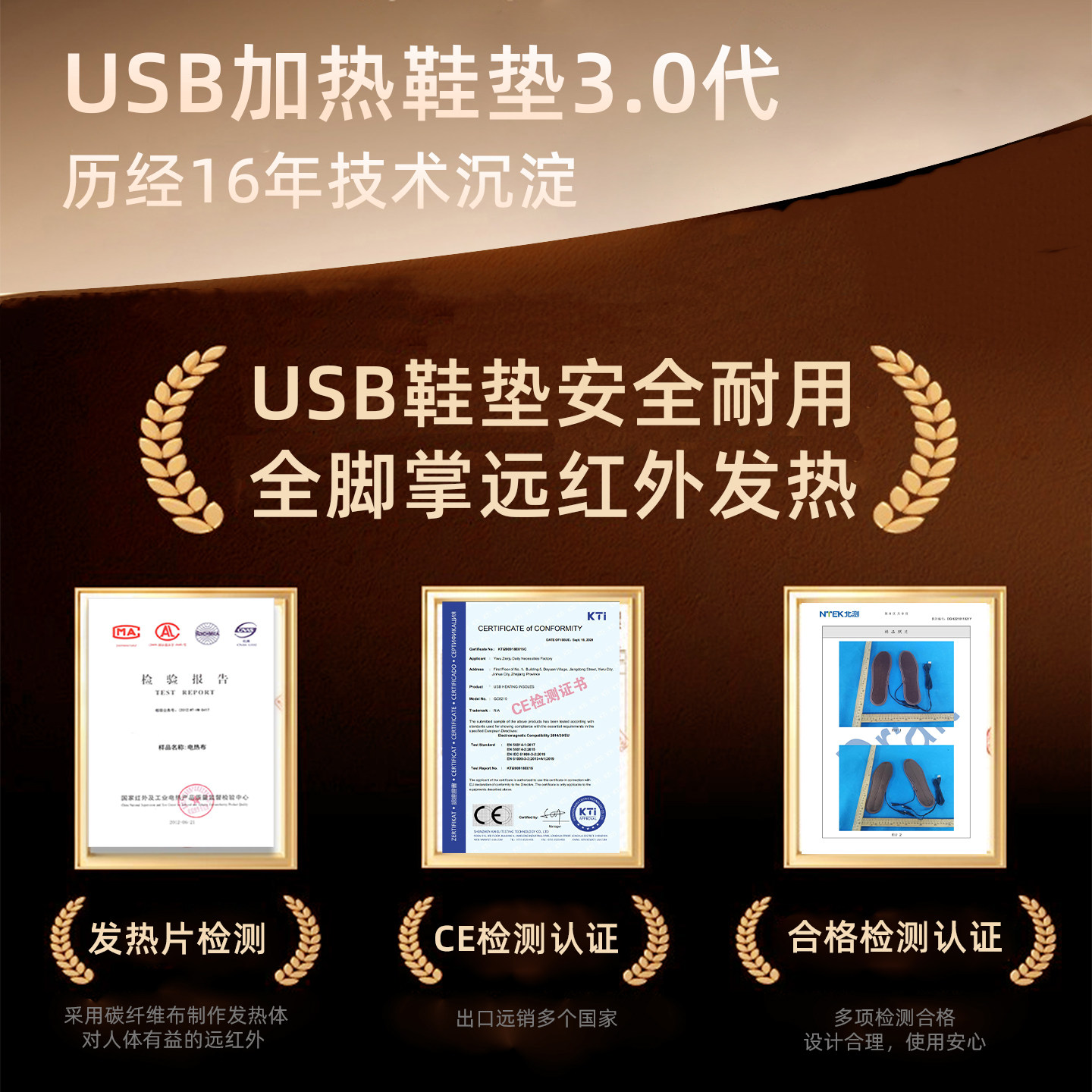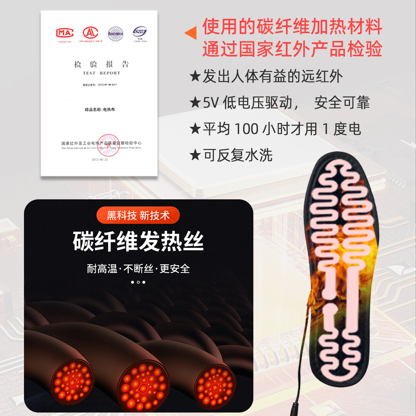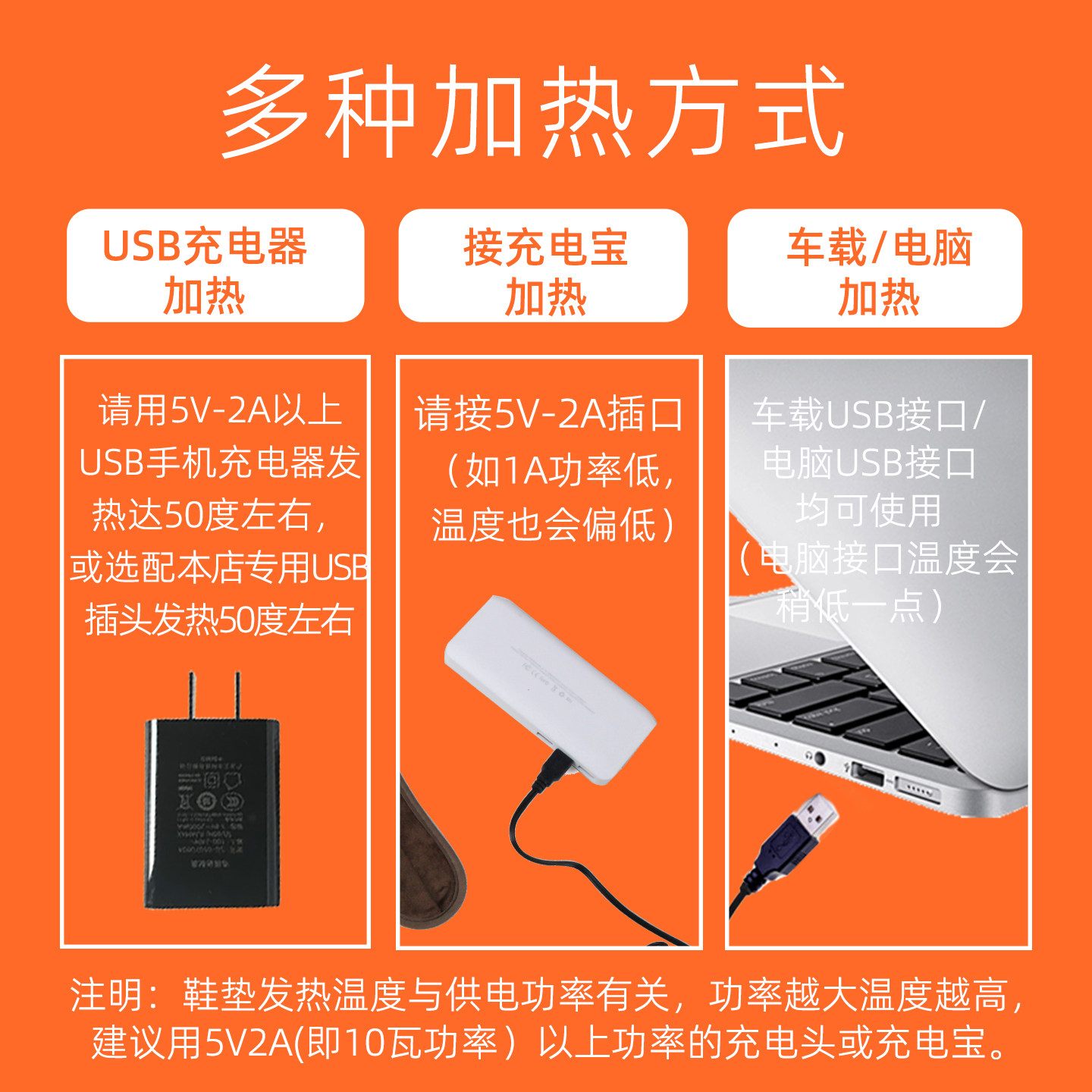 推荐理由:USB安全微电压 鞋垫可水洗 用充电头/充电宝